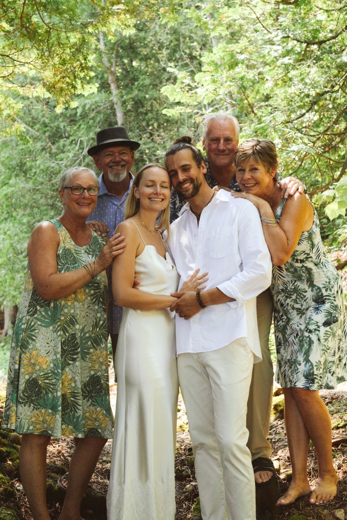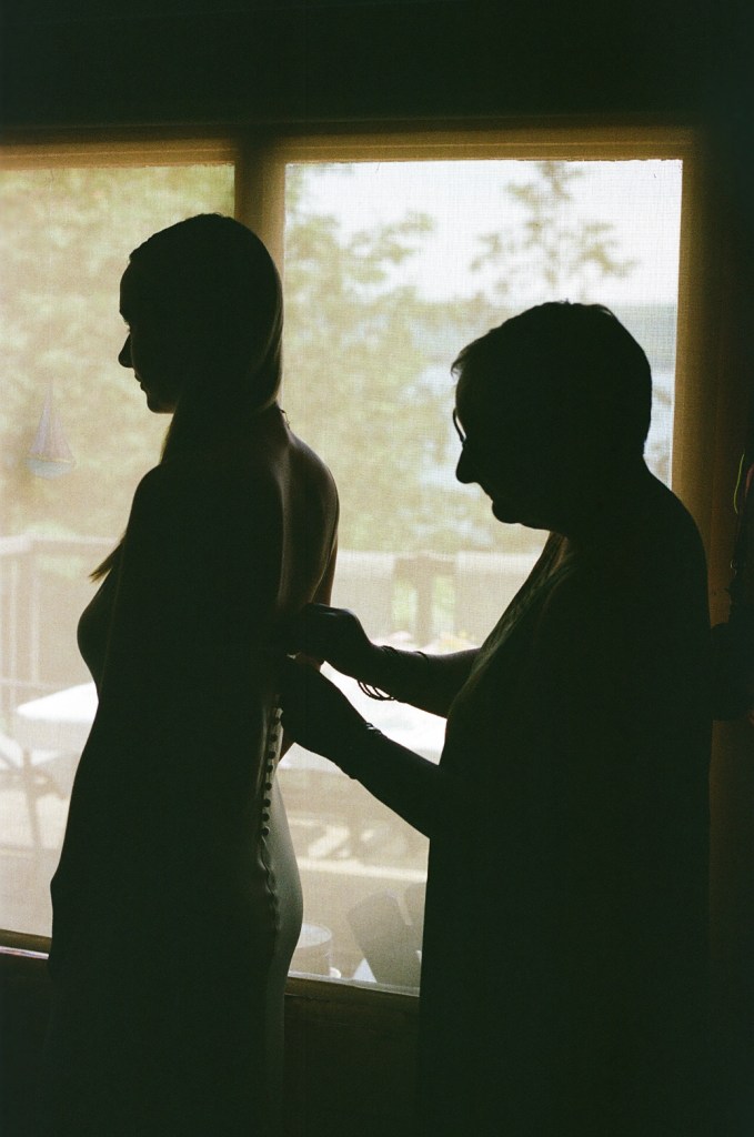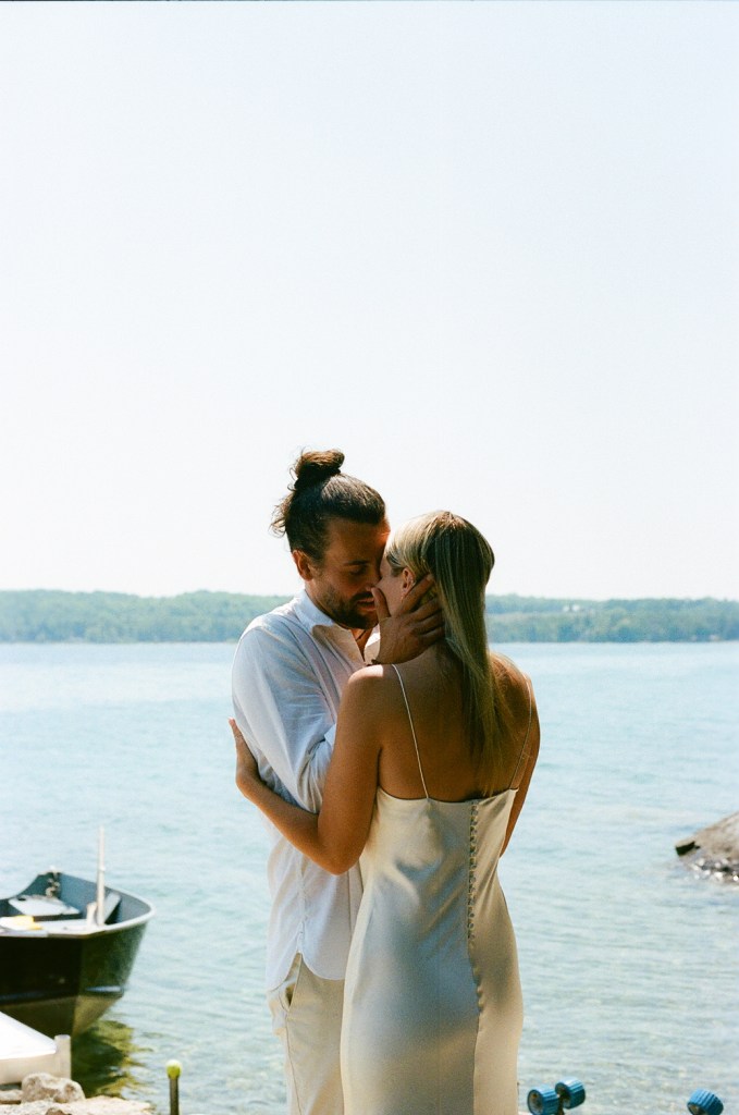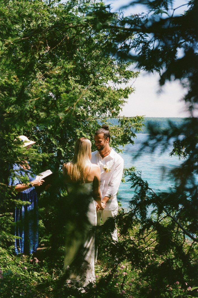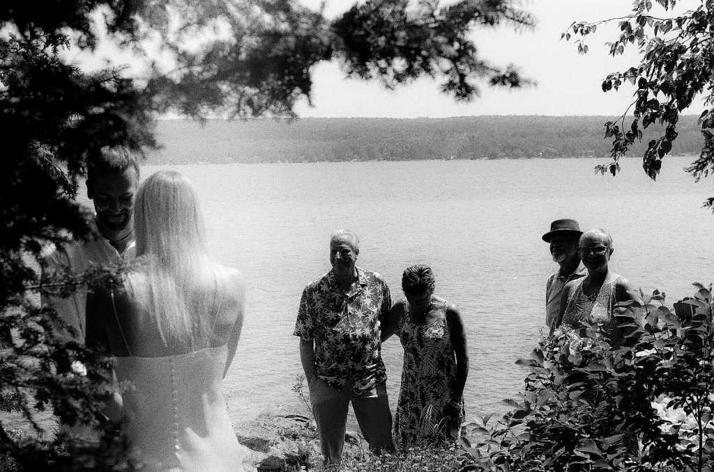 Anna and Bradley invited me to their intimate cottage ceremony to capture their commitment to each other with their parents. They asked specifically for the documentation to be done on all film, which we had a lengthly discussion on the ever-possibility of something in the process failing. The day was laid-back with the most perfect weather. Everyone was calm but excited. The day was simply a ceremony on the rocks as a commemoration of the life they intend to spend together, family photos in the dappled light of the trees, a jump in Georgian Bay, all followed up by margarita’s in the beautiful sunshine. It was an inspiring display of love and family, and with the medium of 35mm film, these photos came back from the lab even more special.